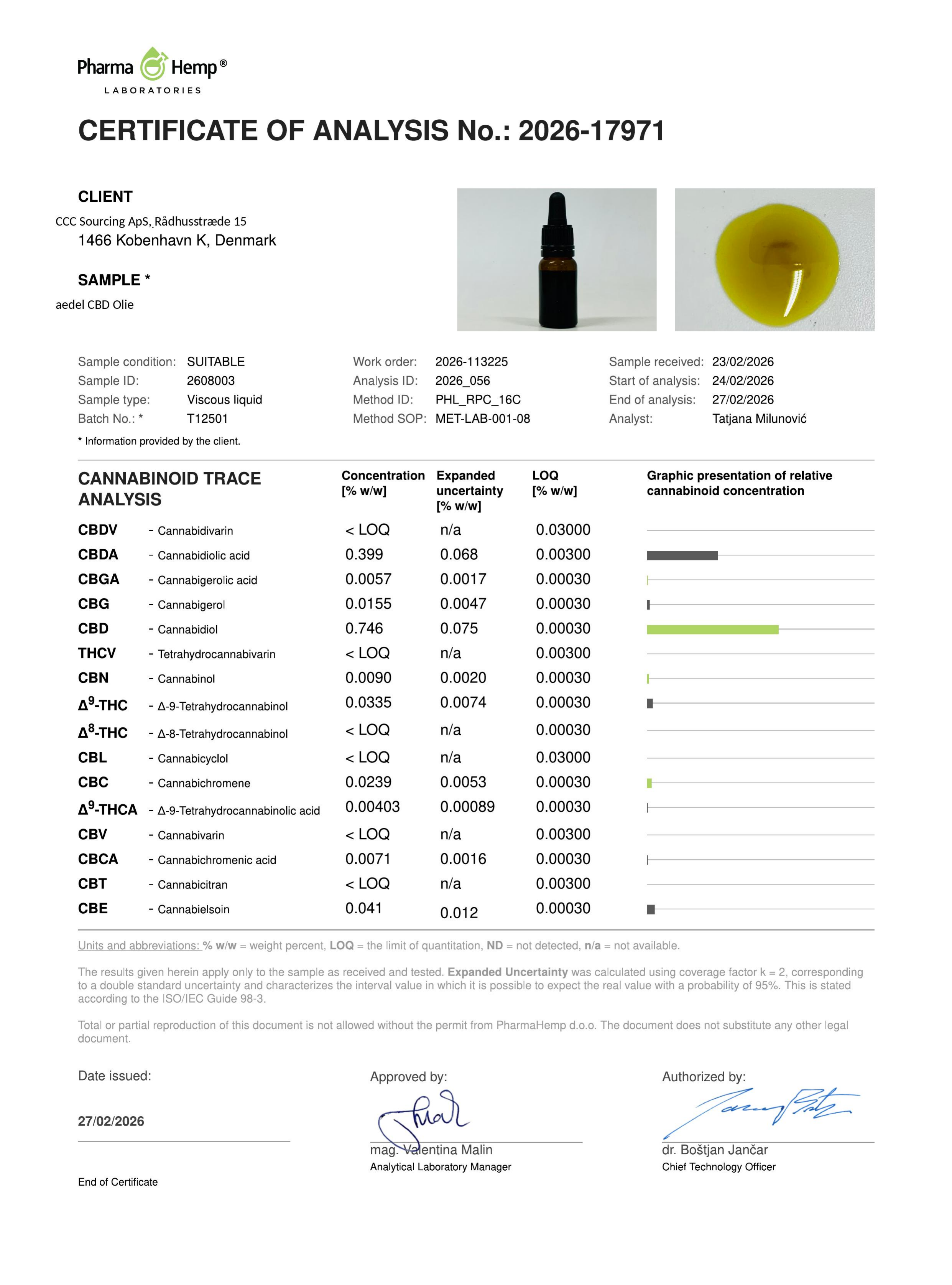 CBD: 0.746% (Fuld spektrum) • THC: <0.2% (EU-godkendt)
